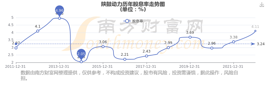 近年陜鼓動(dòng)力年度股息率走勢(shì)如下圖:
