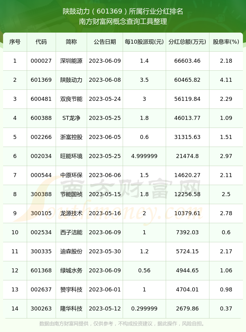 二、陜鼓動(dòng)力601369行業(yè)分紅排名