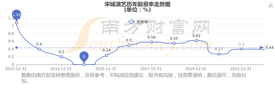 宋城演藝歷年股息率走勢如下圖: