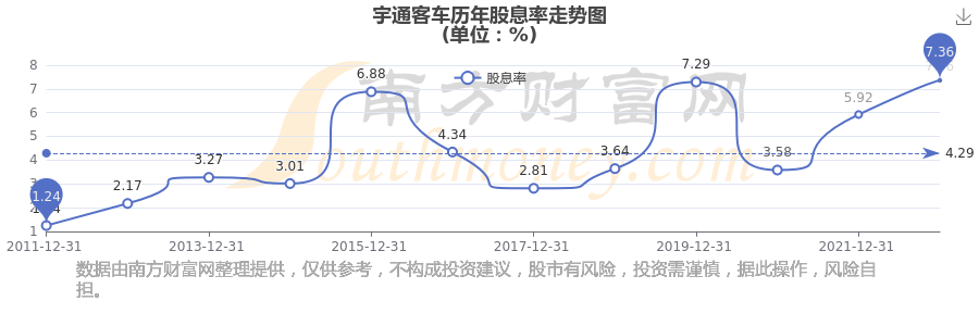 宇通客車(chē)歷年股息率走勢(shì)如下圖: