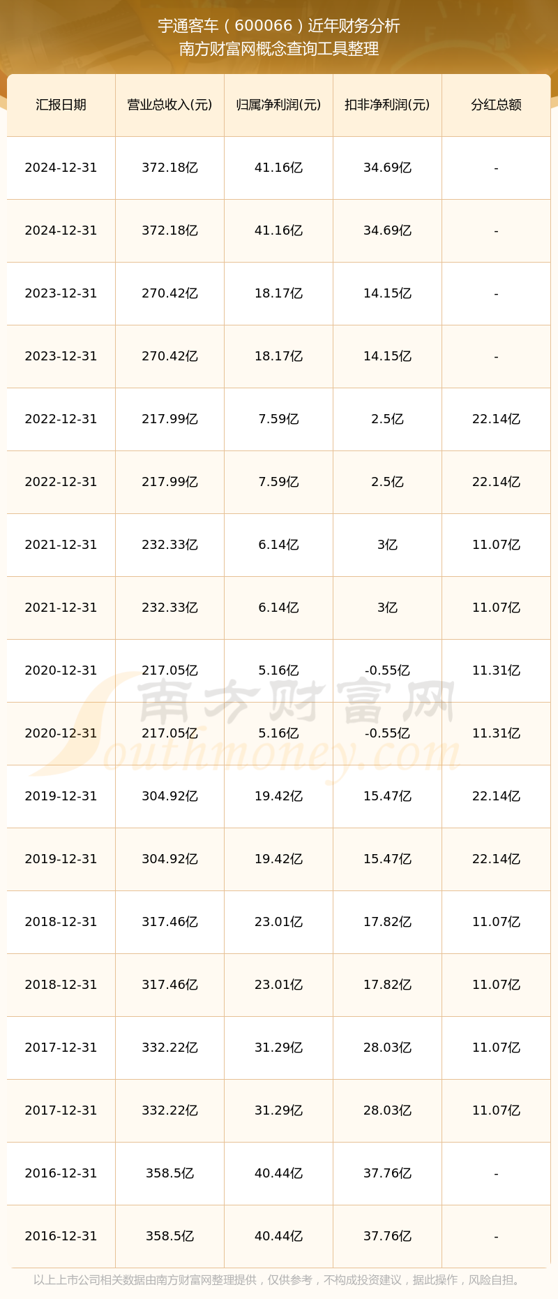 宇通客車(chē)歷年分紅派息情況如下表所示:
