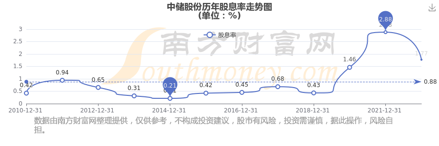 近年中儲股份年度股息率走勢如下圖: