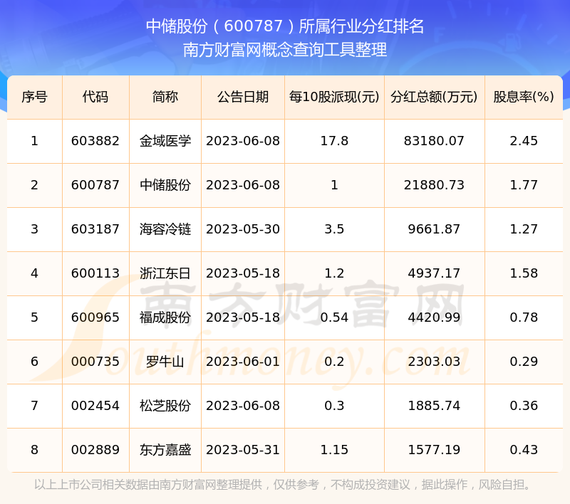 二、中儲股份600787行業(yè)分紅排名