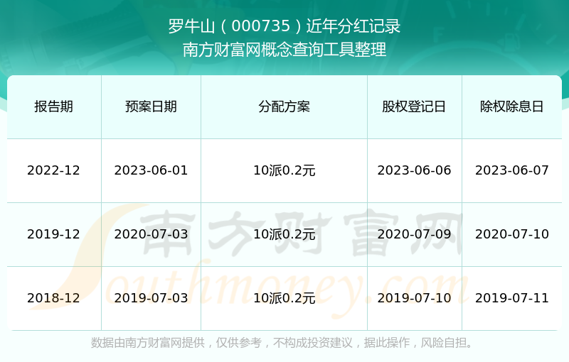 羅牛山最新一次公布的分紅方案為10派0.2元。本次權(quán)益分派股權(quán)登記日為2023年6月6日,除權(quán)除息日為2023年6月7日,派息日為2023年6月7日。