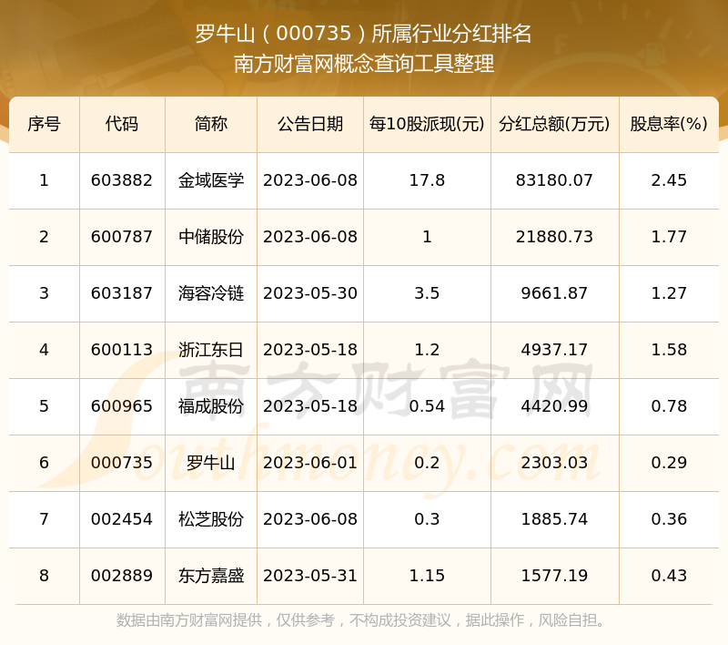 二、羅牛山000735行業(yè)分紅排名