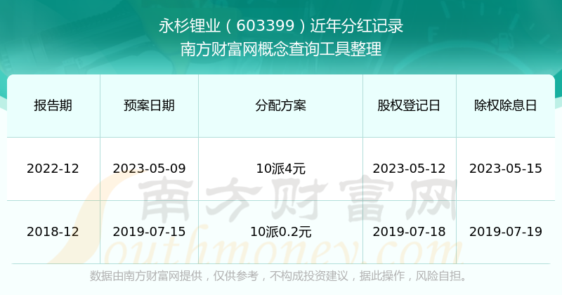 永杉鋰業(yè)最新一次公布的分紅方案:10派4元。