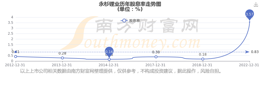 永杉鋰業(yè)歷年股息率走勢如下圖: