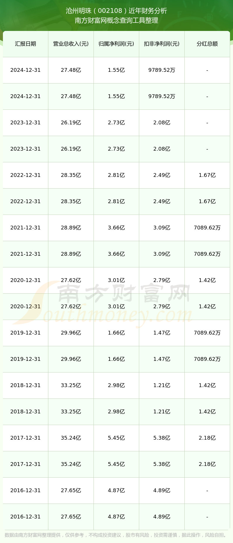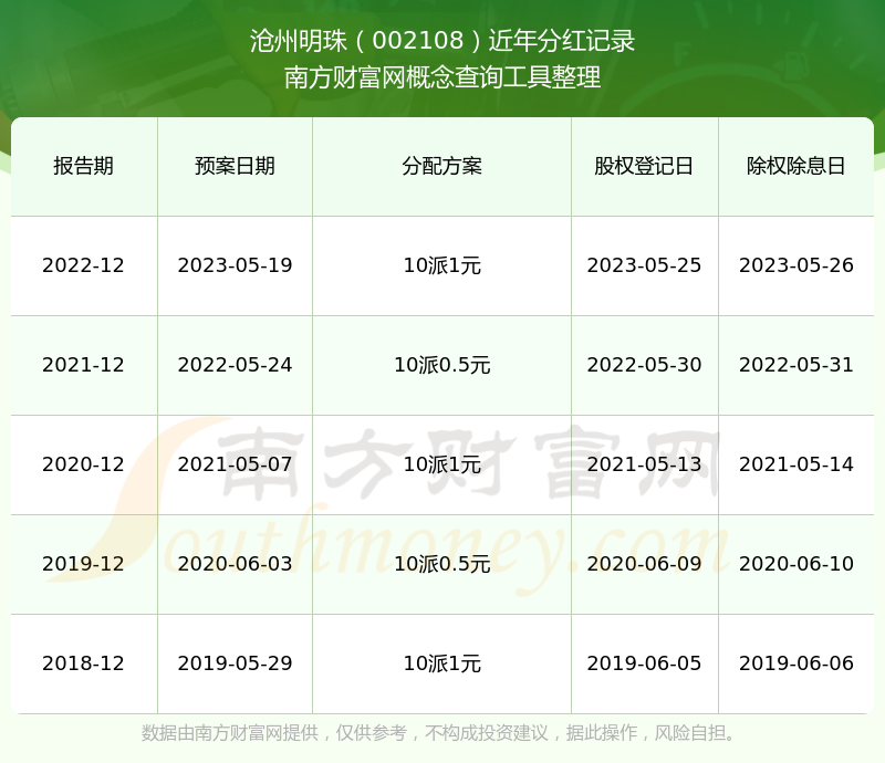 滄州明珠最新一次公布的分紅方案:10派1元。