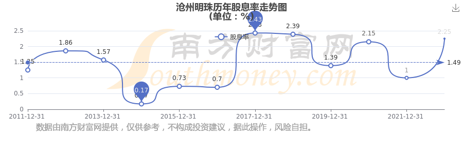 滄州明珠歷年股息率走勢(shì)如下圖: