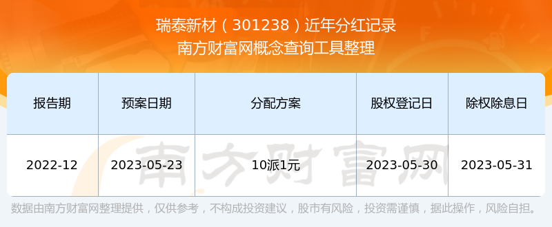 一、瑞泰新材(301238)股票分紅記錄