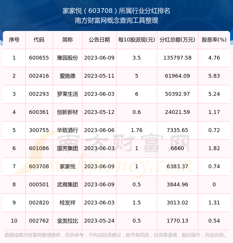 按照南方財(cái)富網(wǎng)趨勢選股系統(tǒng)統(tǒng)計(jì),家家悅所屬行業(yè)為商業(yè)百貨行業(yè),商業(yè)百貨行業(yè)分紅排名情況如下表: