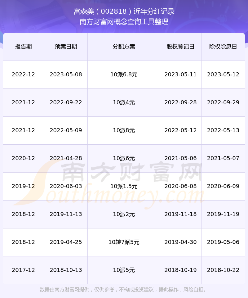 一、富森美(002818)股票分紅記錄