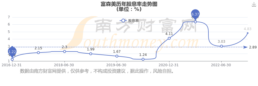 近年富森美年度股息率走勢如下圖:
