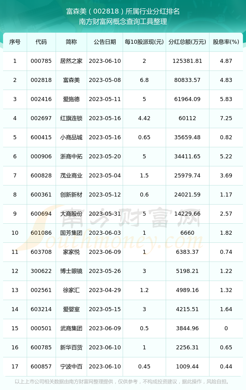 二、富森美002818行業(yè)分紅排名