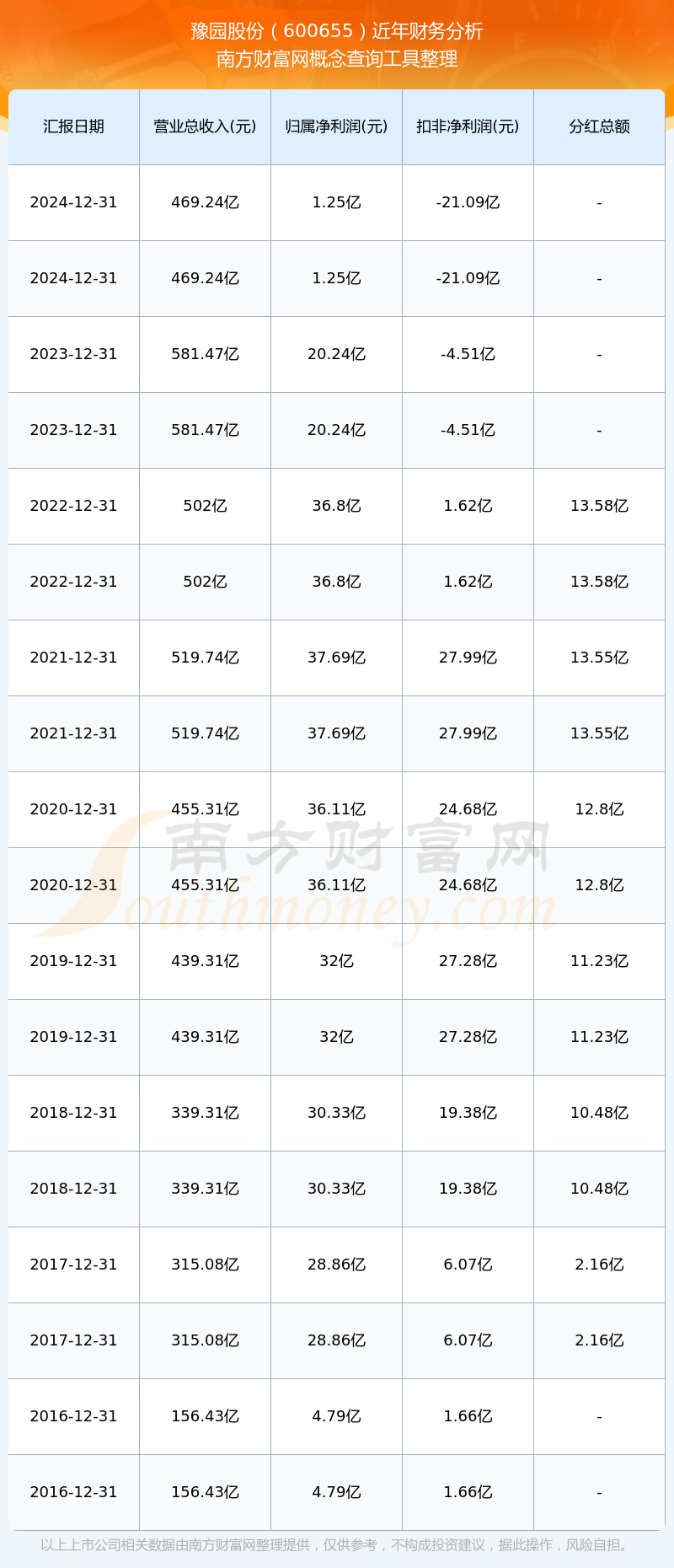 2024年豫園股份總營收469.24億,同比增長-19.3%;凈利潤1.25億,同比增長-93.81%;銷售毛利率13.6%。