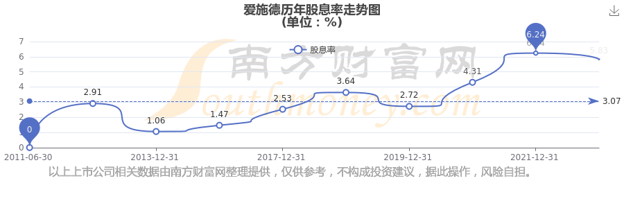 愛(ài)施德歷年股息率走勢(shì)如下圖: