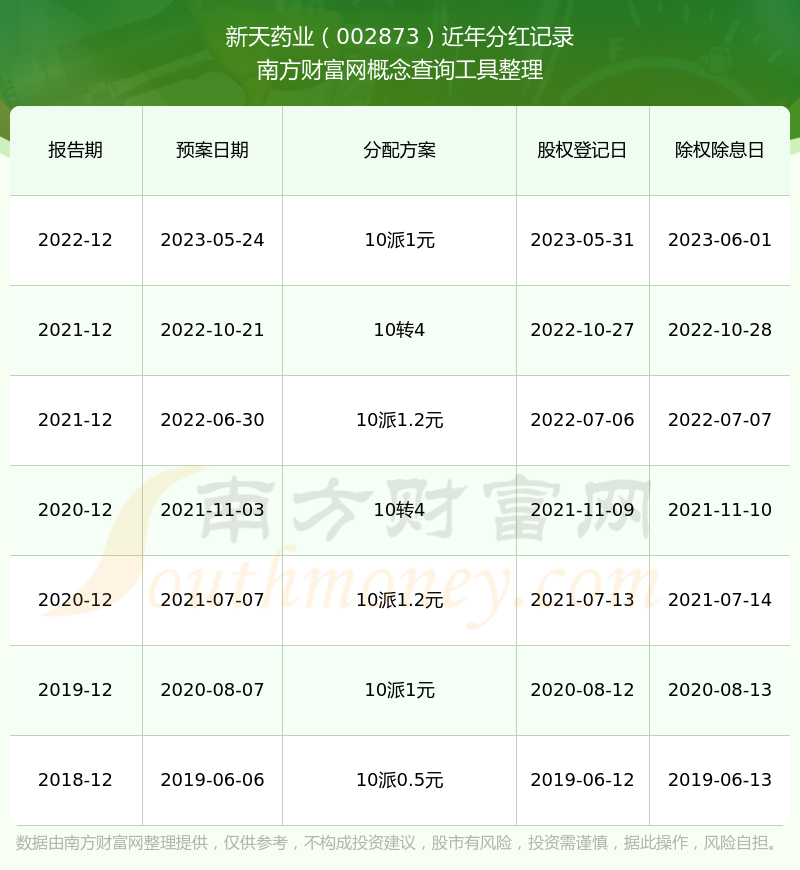 近年新天藥業(yè)分紅派息情況如下表所示: