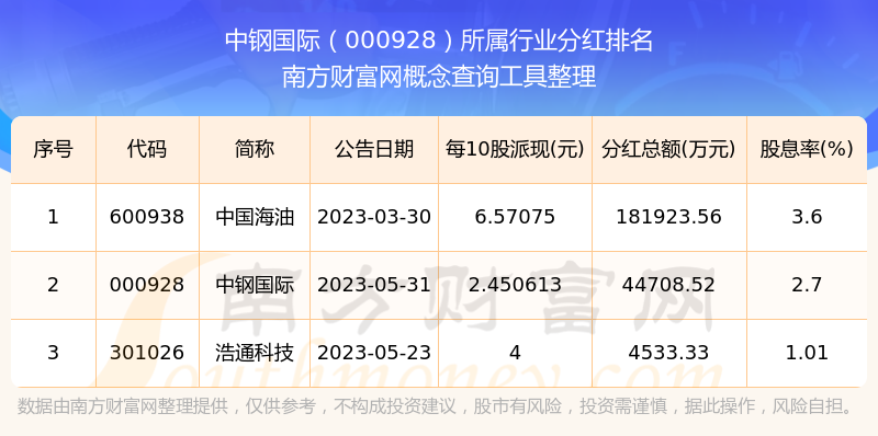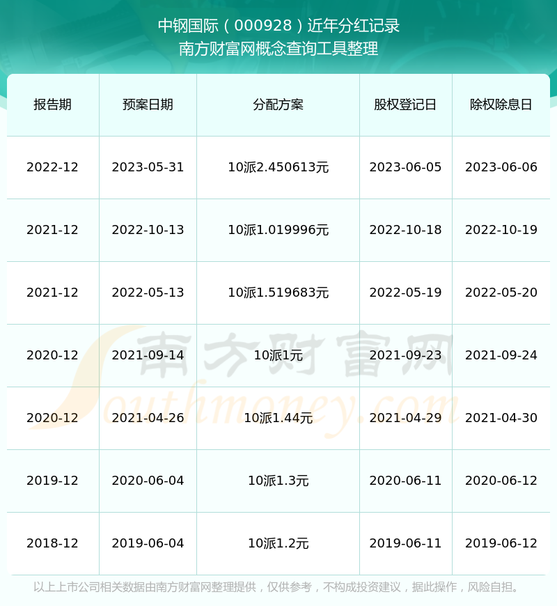 中鋼國際最新一次公布的分紅方案為10派2.450613元。本次權(quán)益分派股權(quán)登記日為2023年6月5日,除權(quán)除息日為2023年6月6日,派息日為2023年6月6日。