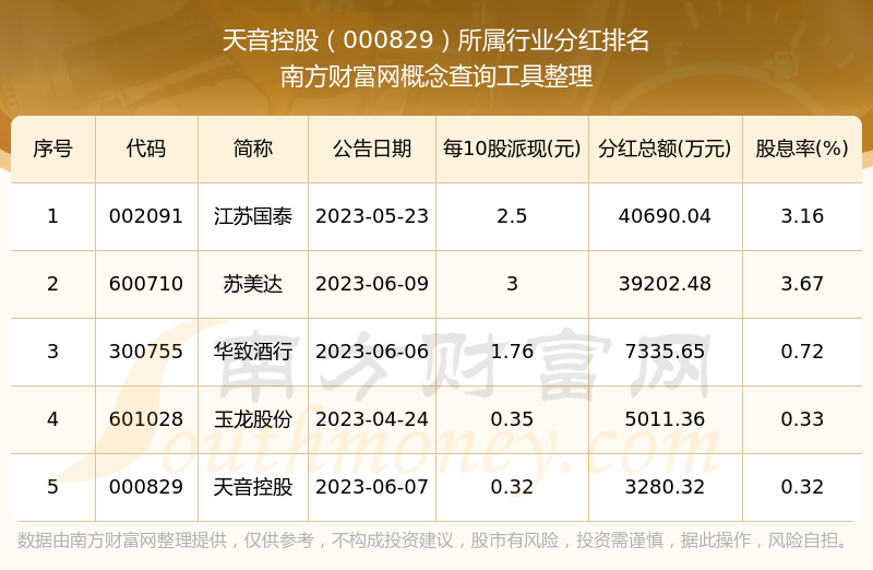 天音控股最新一次公布的分紅方案:10派0.32元。