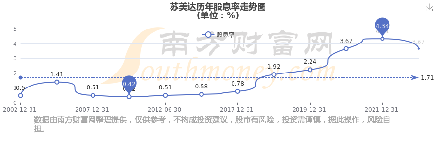 近年蘇美達(dá)年度股息率走勢(shì)如下圖:
