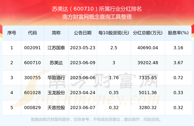 二、蘇美達(dá)600710行業(yè)分紅排名