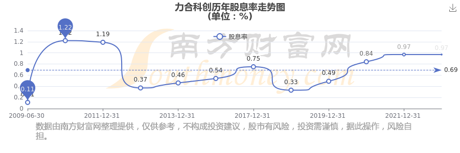 近年力合科創(chuàng)年度股息率走勢如下圖: