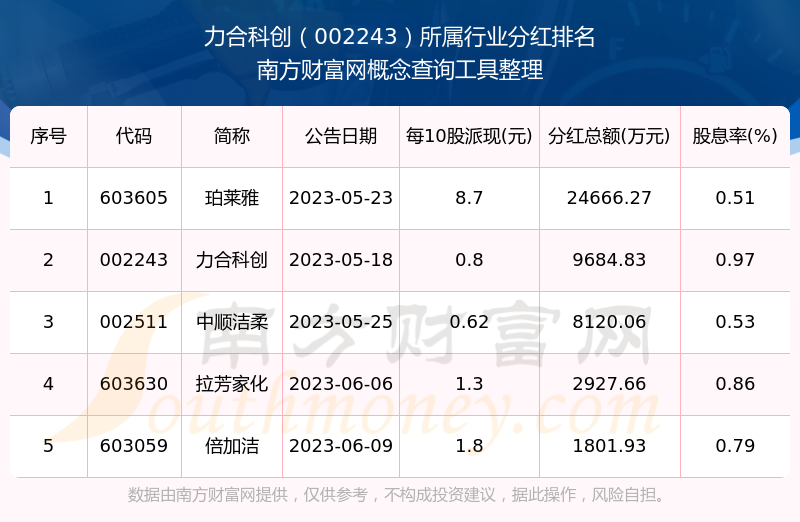 二、力合科創(chuàng)002243行業(yè)分紅排名
