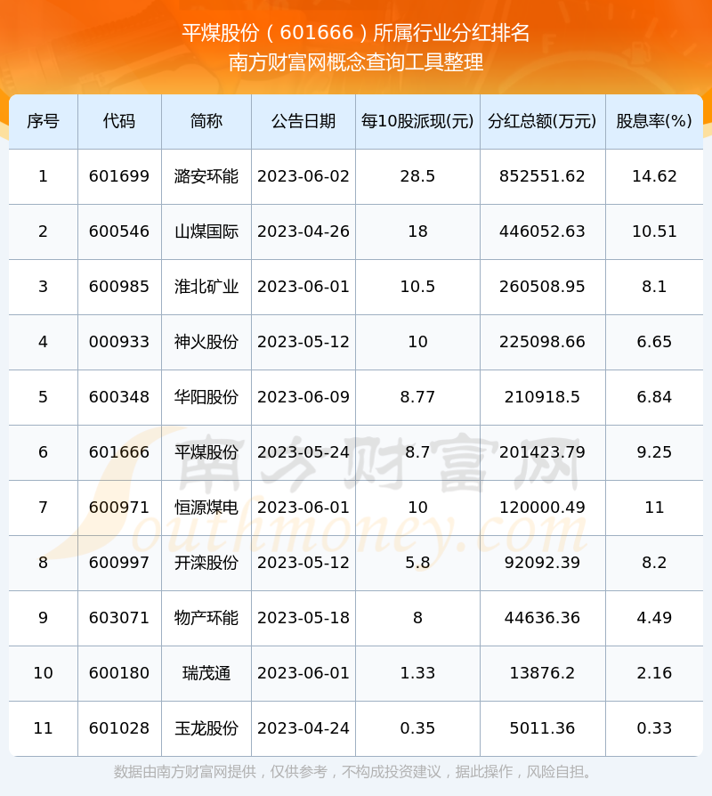 按照南方財富網(wǎng)趨勢選股系統(tǒng)統(tǒng)計,平煤股份所屬行業(yè)為冶煉精煤行業(yè),冶煉精煤行業(yè)分紅排名情況如下表: