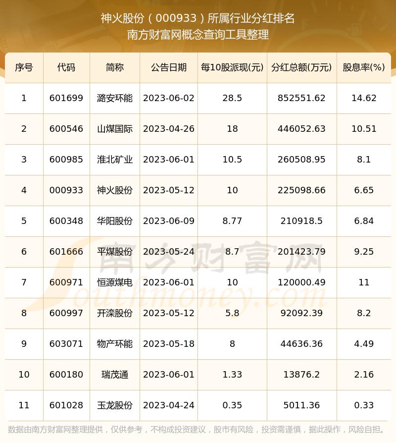 按照南方財富網趨勢選股系統(tǒng)統(tǒng)計,神火股份所屬行業(yè)為鋁錠行業(yè),鋁錠行業(yè)分紅排名情況如下表: