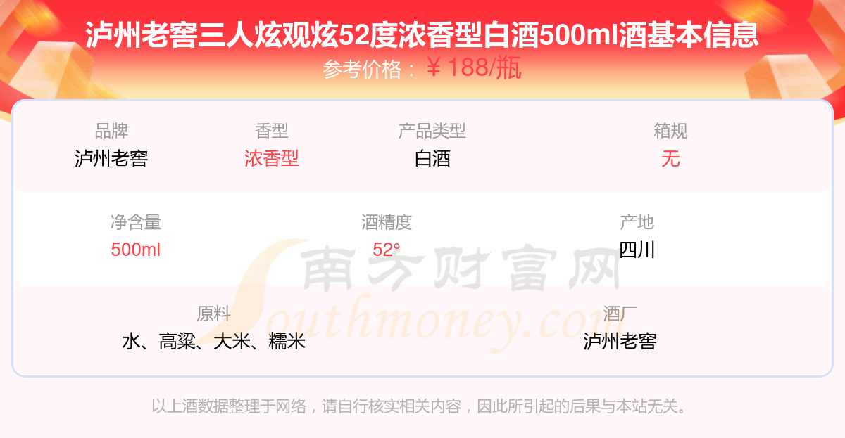 瀘州老窖三人炫觀炫52度濃香型白酒500ml基本信息