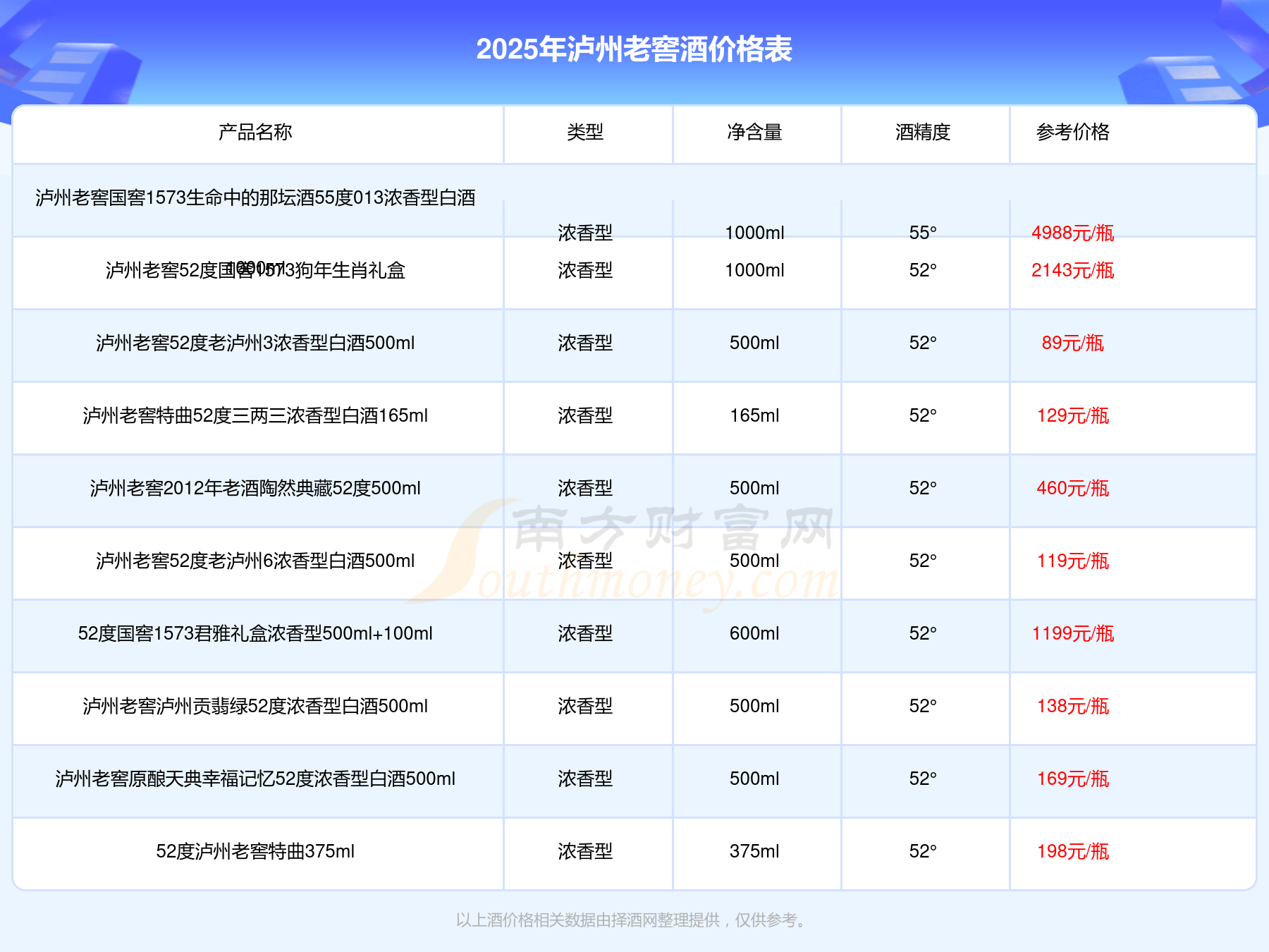 - 瀘州老窖濃香型酒價(jià)格多少一瓶2025價(jià)格表一覽