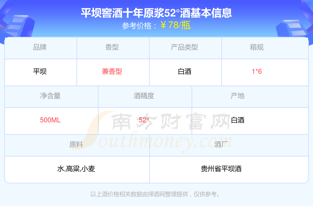 2025年平壩窖酒十年原漿52°酒價格查詢_基本信息一覽