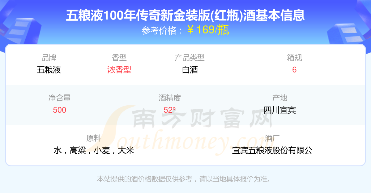 五糧液100年傳奇新金裝版(紅瓶)基本信息