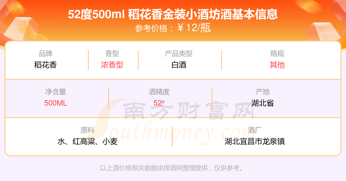 52度500ml 稻花香金裝小酒坊酒價(jià)格多少一瓶2025價(jià)格一覽表