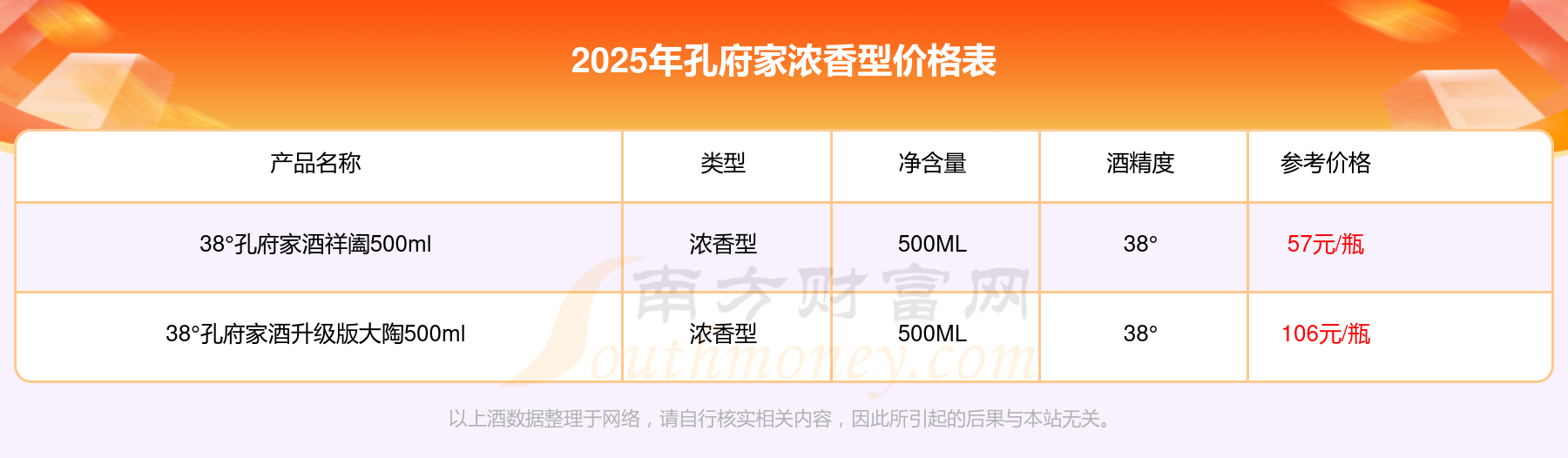 孔府家濃香型酒價(jià)格表2025查詢一覽(多少錢一瓶)