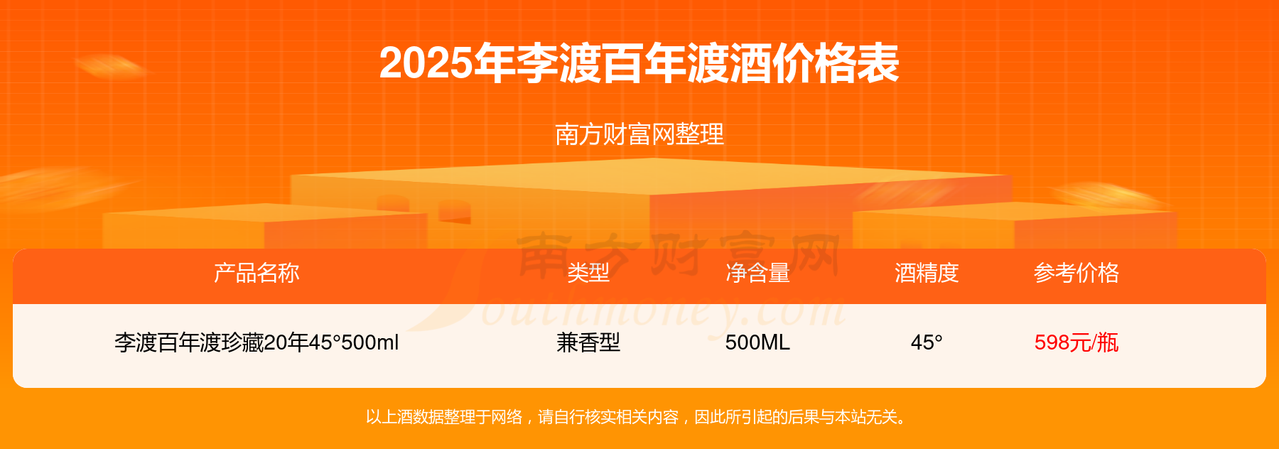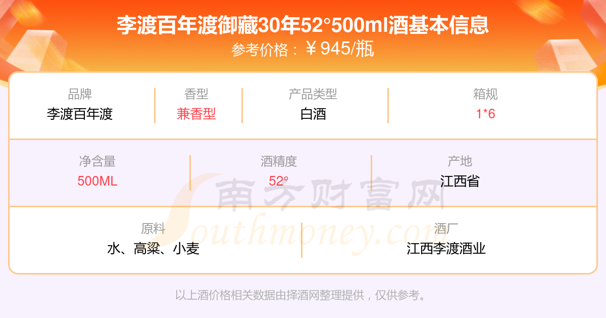 李渡百年渡御藏30年52°500ml酒價(jià)格2025一覽