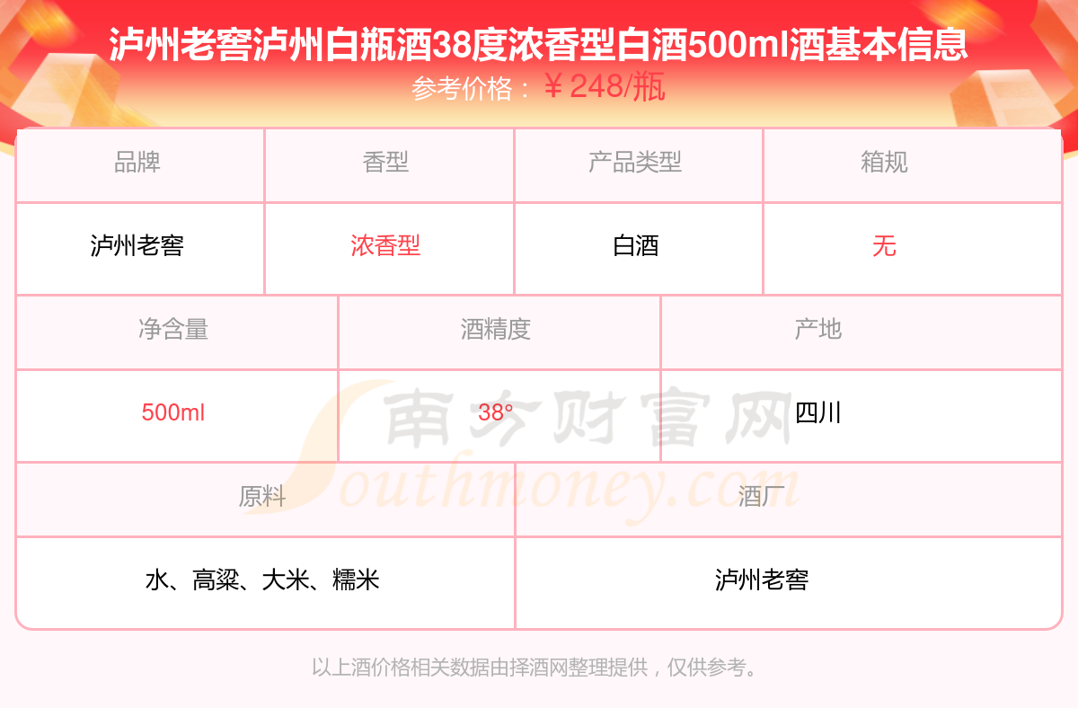 瀘州老窖瀘州白瓶酒38度濃香型白酒500ml基本信息