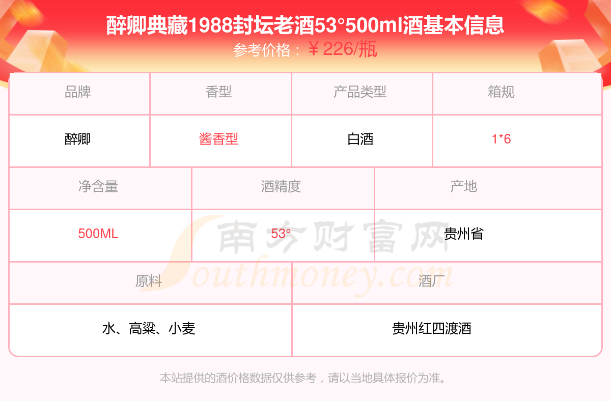 醉卿典藏1988封壇老酒53°500ml基本信息