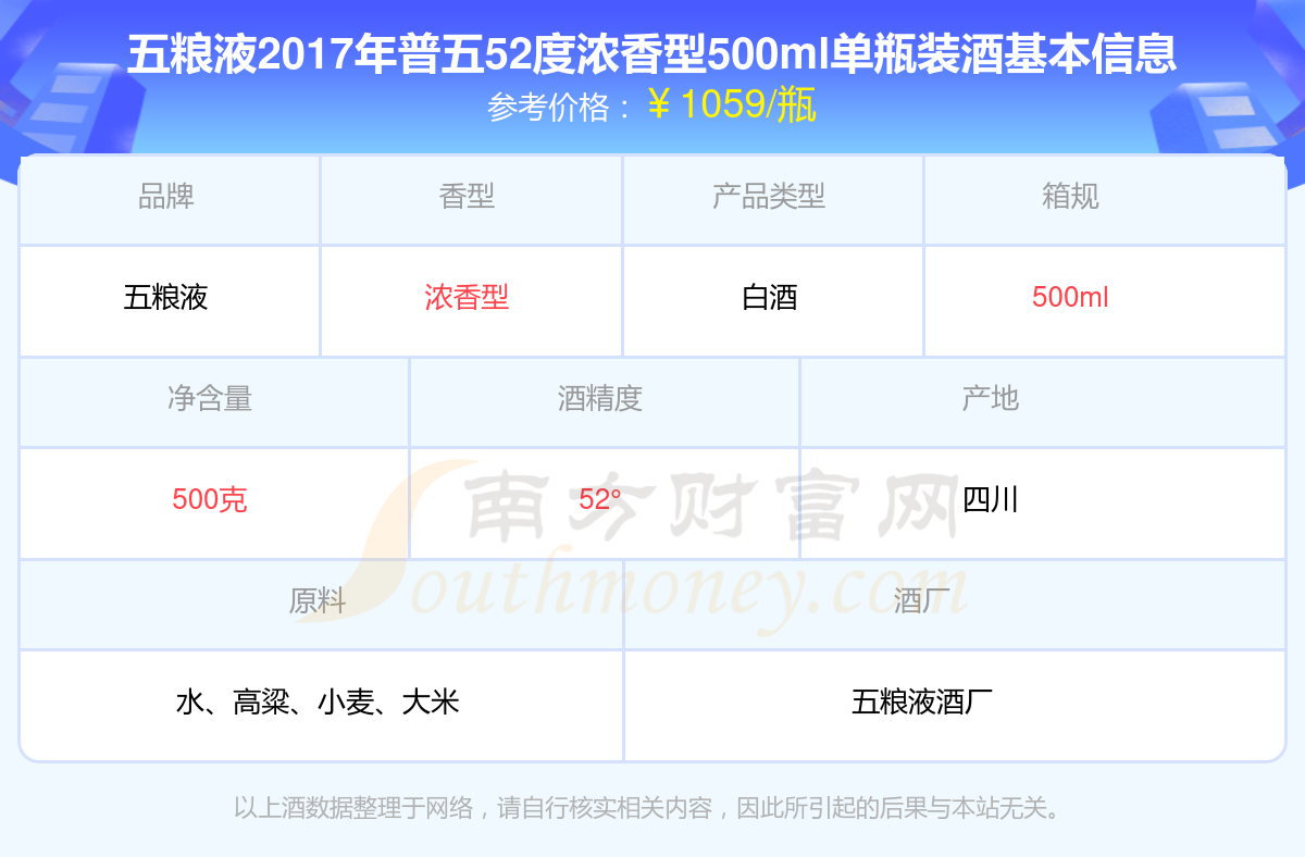 五糧液2017年普五52度濃香型500ml單瓶裝基本信息