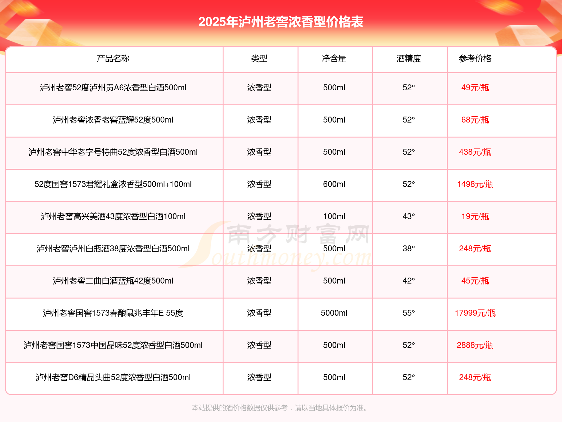 瀘州老窖濃香型酒最新價(jià)格2025: