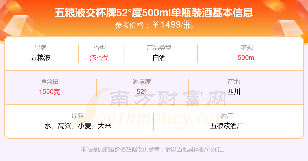 五糧液交杯牌52°度500ml單瓶裝基本信息