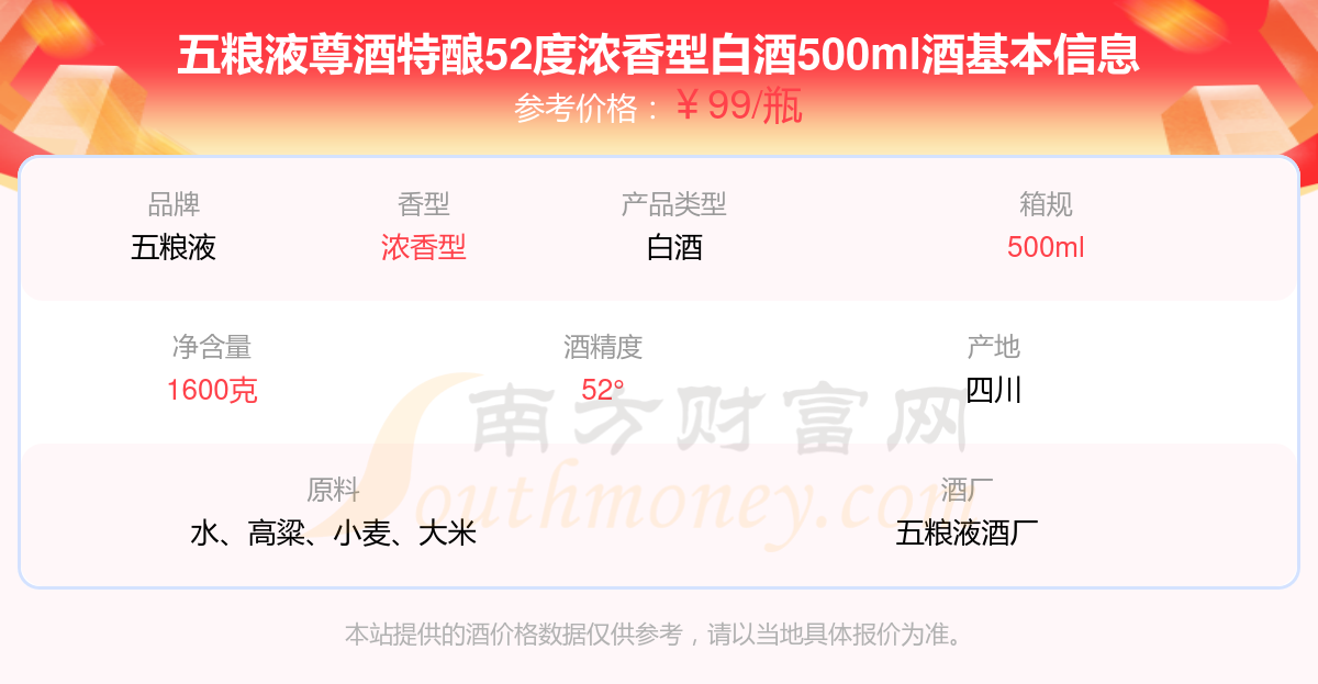 五糧液尊酒特釀52度濃香型白酒500ml基本信息