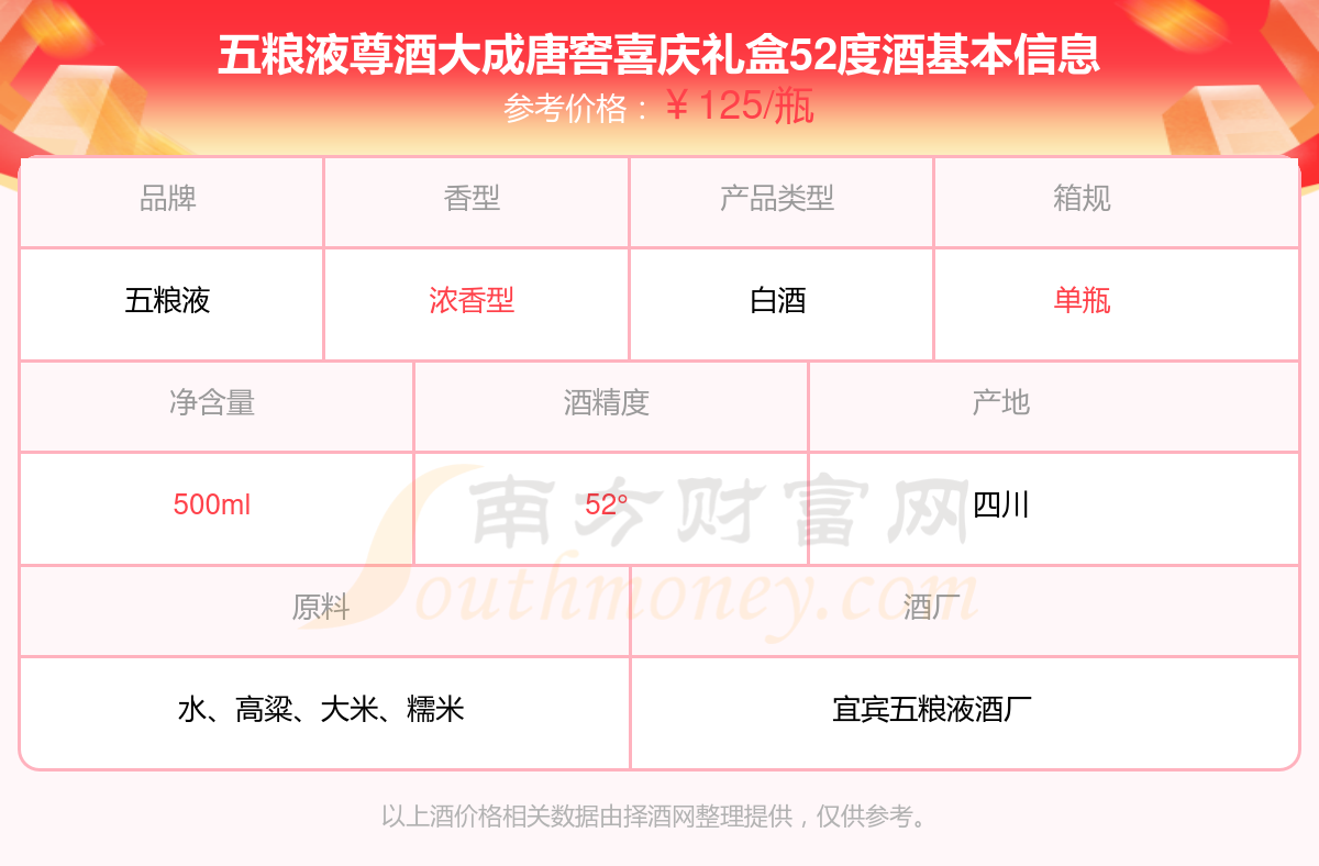 五糧液尊酒大成唐窖喜慶禮盒52度基本信息