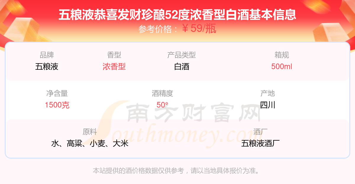 五糧液恭喜發(fā)財珍釀52度濃香型白酒基本信息