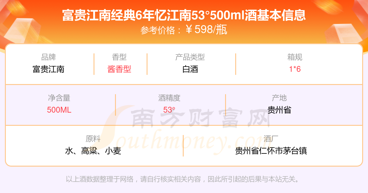 富貴江南經(jīng)典6年憶江南53°500ml基本信息