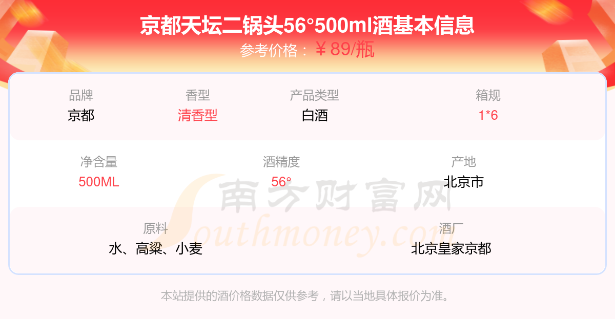 京都天壇二鍋頭56°500ml基本信息