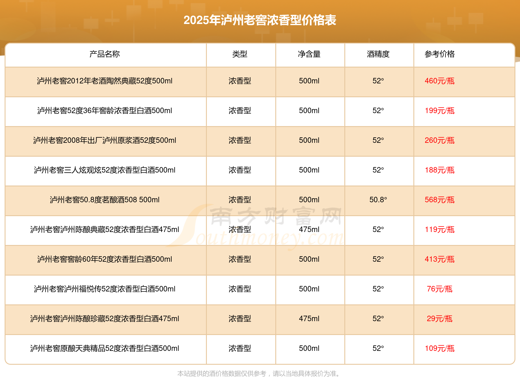 瀘州老窖濃香型酒最新價(jià)格2025: