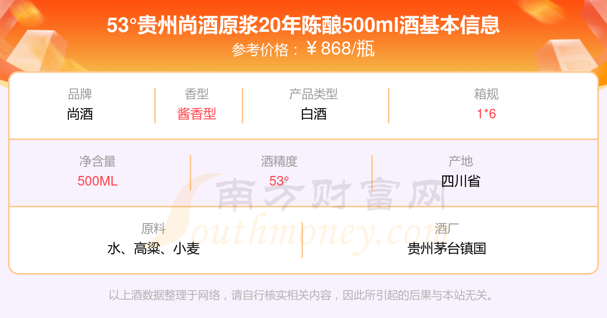 53°貴州尚酒原漿20年陳釀500ml基本信息