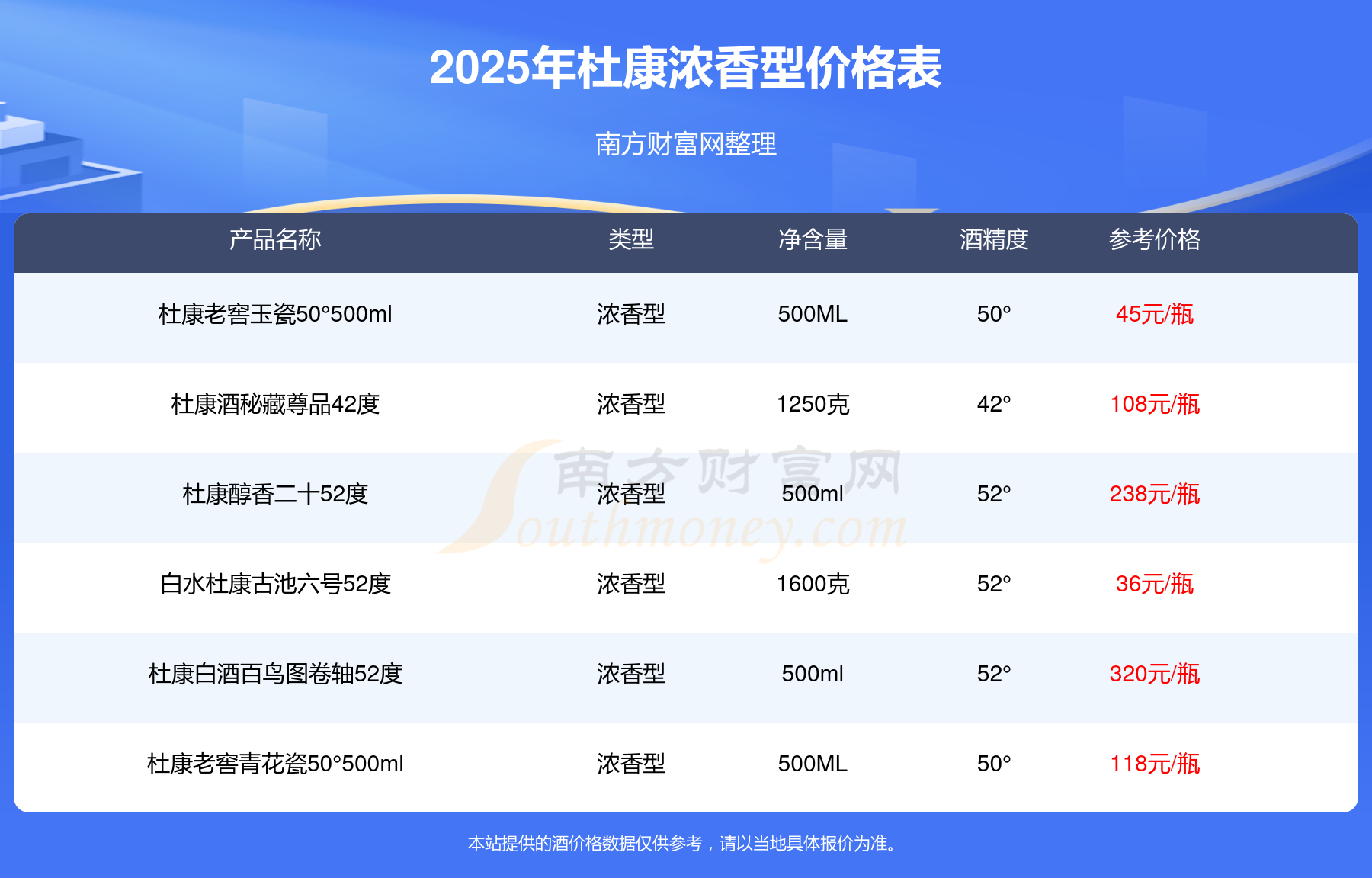 2025杜康濃香型酒最新價格: