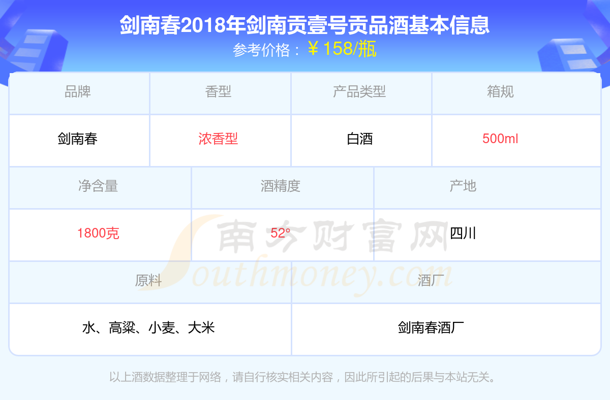 劍南春2018年劍南貢壹號貢品基本信息